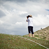 我喜欢新疆的美景,大气,野性,率真,具阳刚之气的随性,不像江南的美景,精致,娴雅,文静,具阴柔之韵的刻意。这就好比两幅字画,一幅狂放的草书,一幅精深的小篆,一张泼墨的“写意”,一张细腻的“没骨”,而木垒平顶山正属前者。 在平顶山的最高处有一个“摄影基地”,一面坡弯上去可见着的平台,平台仗着“区位”